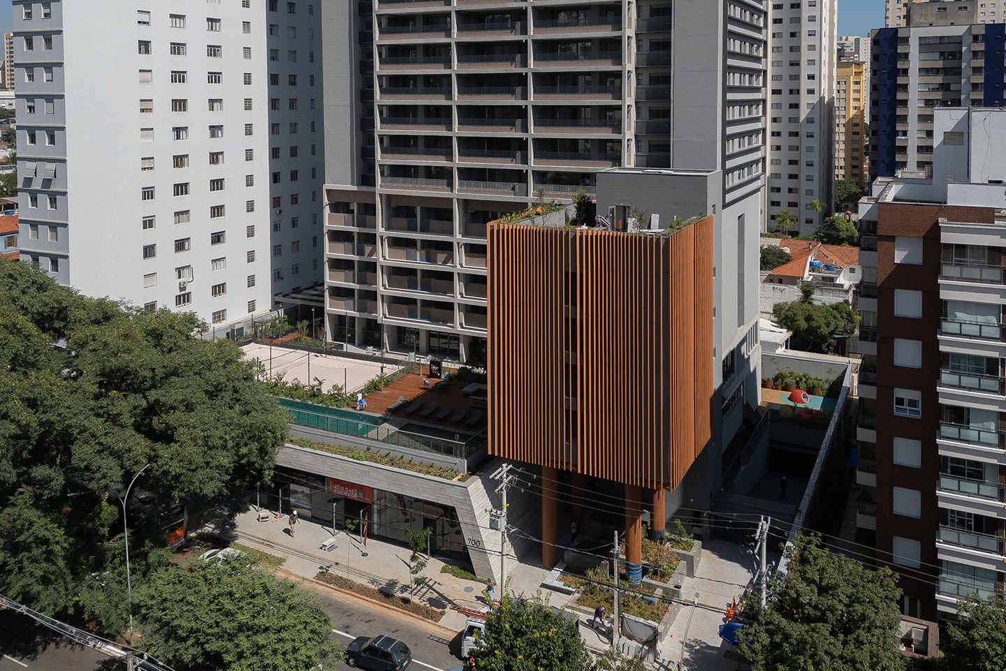 acesso de pedestres de todos os usos e vagas + lazer + lojas